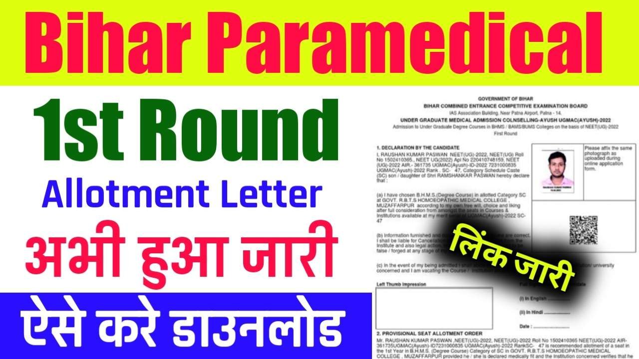 Bihar Paramedical 1st Allotment Letter 2025 Overview