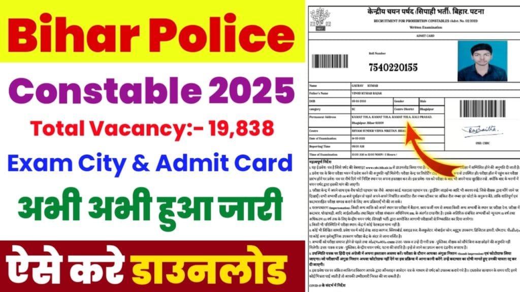 Bihar Police Constable Admit Card Download 2025:- नमस्कार दोस्तों आप सभी छात्र एवं छात्राएं को हमारे इस नए आर्टिकल पर