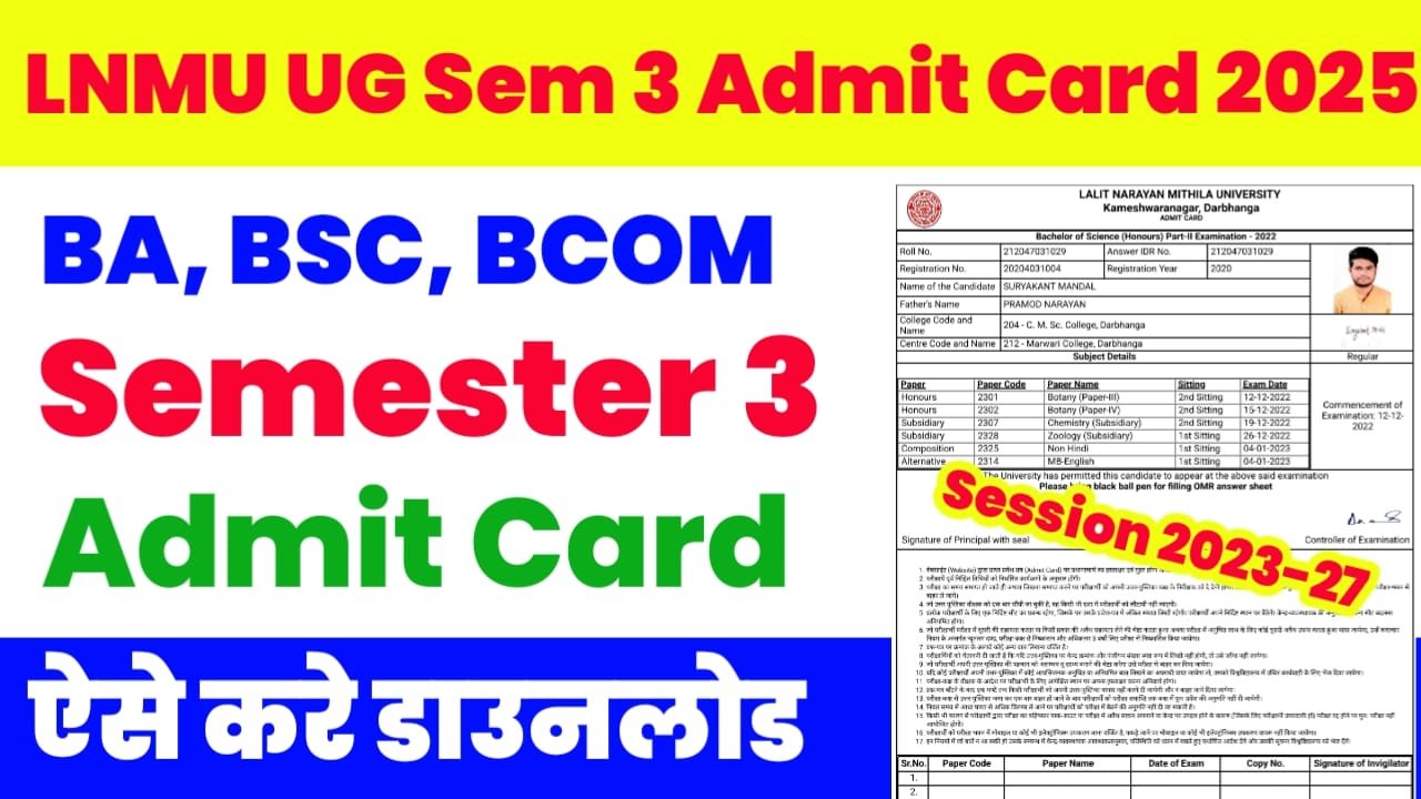 LNMU UG Sem 3 Admit Card 2023-27 Download:- नमस्कार दोस्तों आप सभी छात्र एवं छात्राएं को हमारे इस नए आर्टिकल पर हम हार्दिक स्वागत करते हैं। दोस्तो क्या आप भी होने वाले LNMU यूजी सेमेस्टर 3 परीक्षा 2025 में शामिल होने वाले है। जिसकी आयोजित किए जाने वाली परीक्षा 21 मई 2025 से 6 जून 2025 तक इस परीक्षा को सभी केन्द्रों पर लिखित परीक्षा द्वारा करवाया जाएगा अब वैसे में तामाम अभियार्थी काफी समय से LNMU UG Semester 3 Admit Card 2023-27 Download करने के इंतेज़ार में बैठे हुए है।