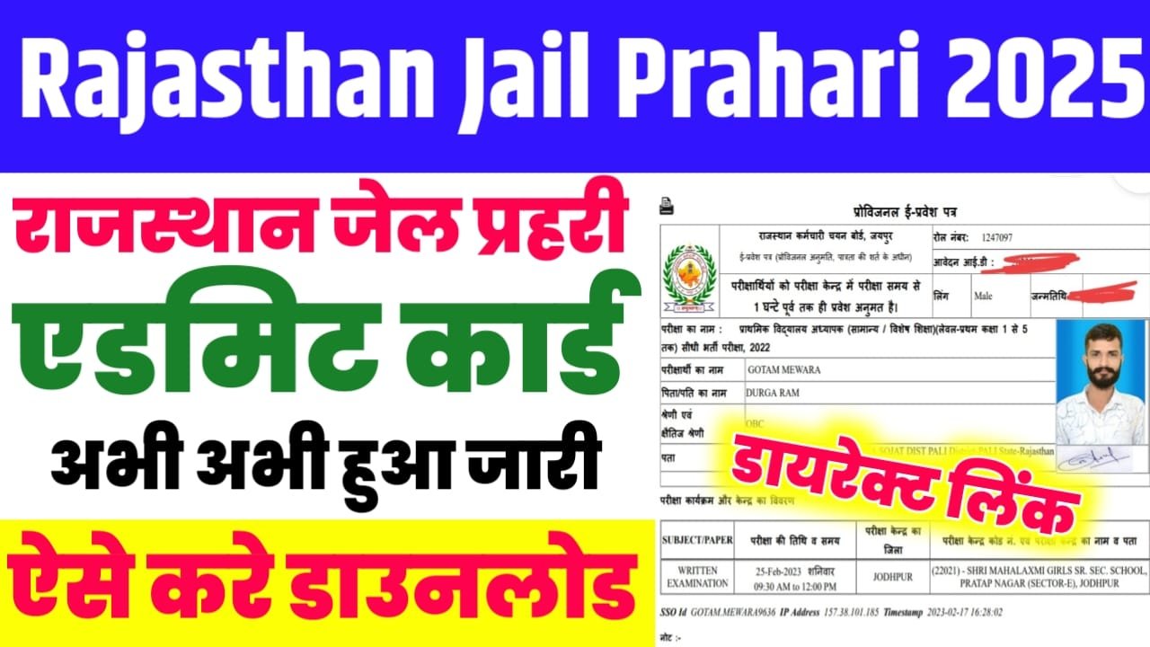 Rajasthan Jail Prahari Admit Card 2025 कैसे करें डाउनलोड ?